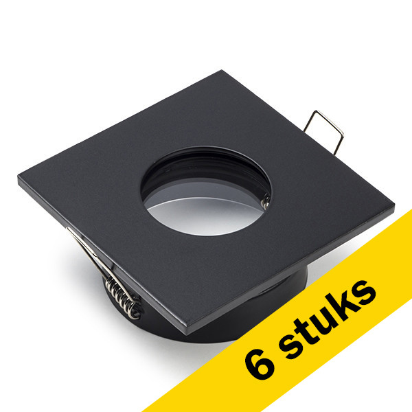 Aanbieding: 6x Led inbouwarmatuur | Vierkant | Zwart | GU10 fitting | Ø 68 mm | IP65
