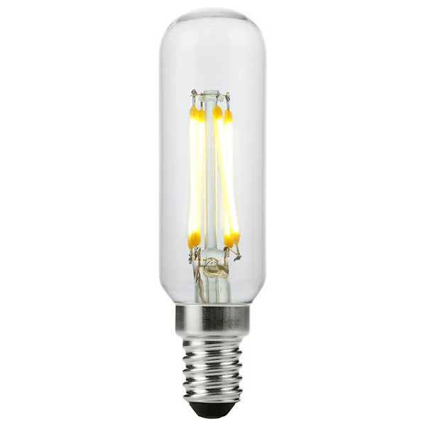 Deze buisvormige led lamp van 123led met E14-fitting is slechts 95 mm hoog en 25 mm in diameter, en past daarmee perfect in compacte armaturen zoals koelkasten, wandlampen, nachtlampjes en decoratieve armaturen. Ondanks het bescheiden formaat levert deze 4W ledlamp een lichtopbrengst van 350 lumen, waarmee het een traditionele 32W gloeilamp vervangt. De heldere coating en de 360° lichthoek zorgen voor een optimale lichtverdeling, terwijl het filament design bijdraagt aan een klassieke, maar stijlvolle uitstraling.