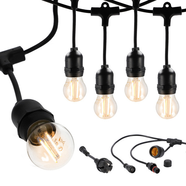 Lichtsnoer buiten 10 meter | 10x E27 fitting | IP54 | Zwart
