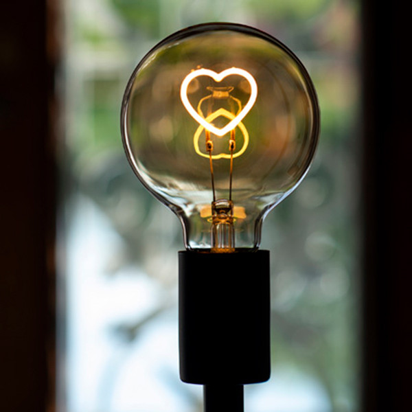 Deze E27 Bailey led lamp is een lampje met een unieke twist. Deze G95 lamp is namelijk voorzien van een filament in de vorm van een hartje. Als de lamp brandt, dan verspreidt dit hartje 90 lumen aan extra warm wit (2000K) licht. Deze knusse lamp zorgt dus voor zeer sfeervol licht. Dankzij de gouden coating oogt de lamp nog warmer, zelfs als deze uit staat. Perfect voor in rechtopstaande open armaturen.