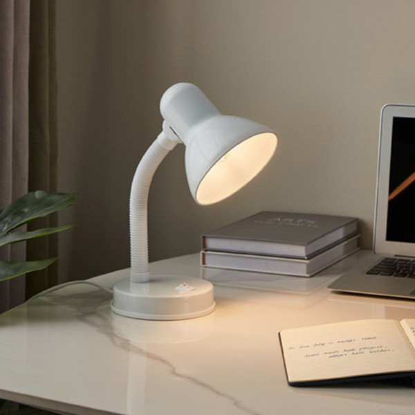 Deze Eglo basic lamp is een simpele, functionele en traditionele bureaulamp. Deze witte lamp is voorzien van een flexibele hals, zodat de lamp altijd de goede kant op schijnt. Maak gebruik van de lichtschakelaar op de lampvoet voor het eenvoudig bedienen van de lamp. Dankzij het minimalistische en functionele design past deze compacte bureaulamp op ieder bureau of tafel.