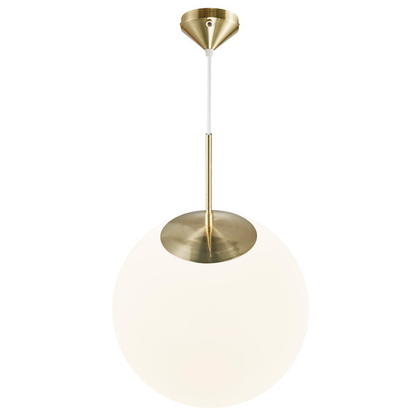 De messing Grant 35 hanglamp van Nordlux is een moderne en elegante lamp dat naast verlichting ook een echt decoratiestuk is. Dit maakt dat de lamp perfect past boven iedere tafel. De lampenkop van deze lamp bestaat uit een bol die is gemaakt van opaal glas dat met de hand is gemaakt. Hierdoor heeft de lampenkap luchtbelletjes en verschillende diktes. Dit maakt iedere lamp weer uniek. Het licht dat hierdoor wordt verspreid is diffuus. Zo heeft u nooit last van verblinding en geniet u van zacht licht.