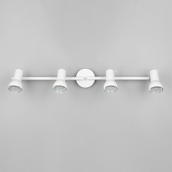 Het tijdloze design van deze Cantar plafond- en wandspot van Trio maakt dat deze past in ieder interieur. De lamp bestaat uit een wit armatuur en vier lampenkappen met metalen beweegbare armen. Zo schijnen de spotjes altijd de juiste kant op.