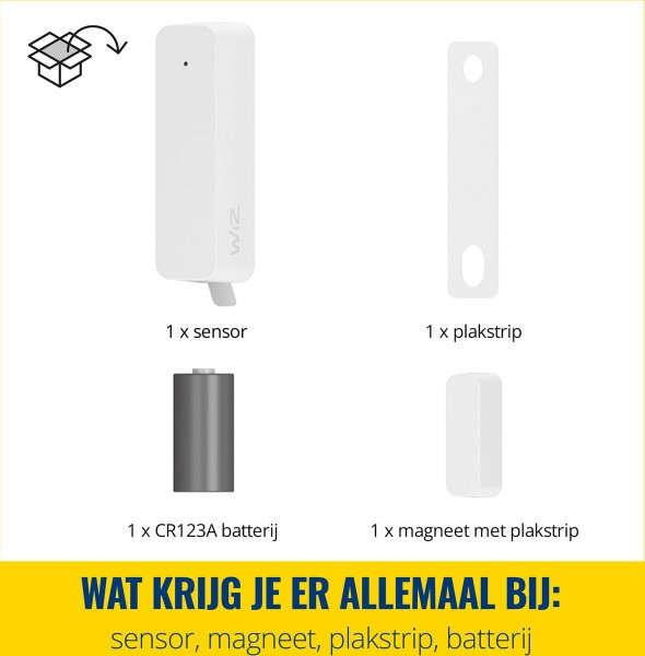Android), zodat u kunt controleren of alles goed is afgesloten, waar u ook bent. De sensor werkt naadloos samen met uw bestaande WiZ slimme verlichting. Laat uw lampen bijvoorbeeld automatisch aangaan bij het openen van een deur, of uitschakelen zodra een raam sluit, ideaal om energie te besparen én een gevoel van veiligheid te vergroten.