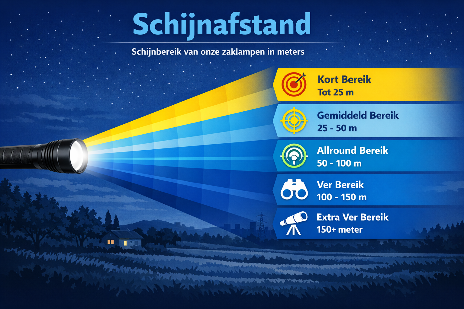 Schijnafstand geeft aan hoe ver het licht van een zaklamp reikt.